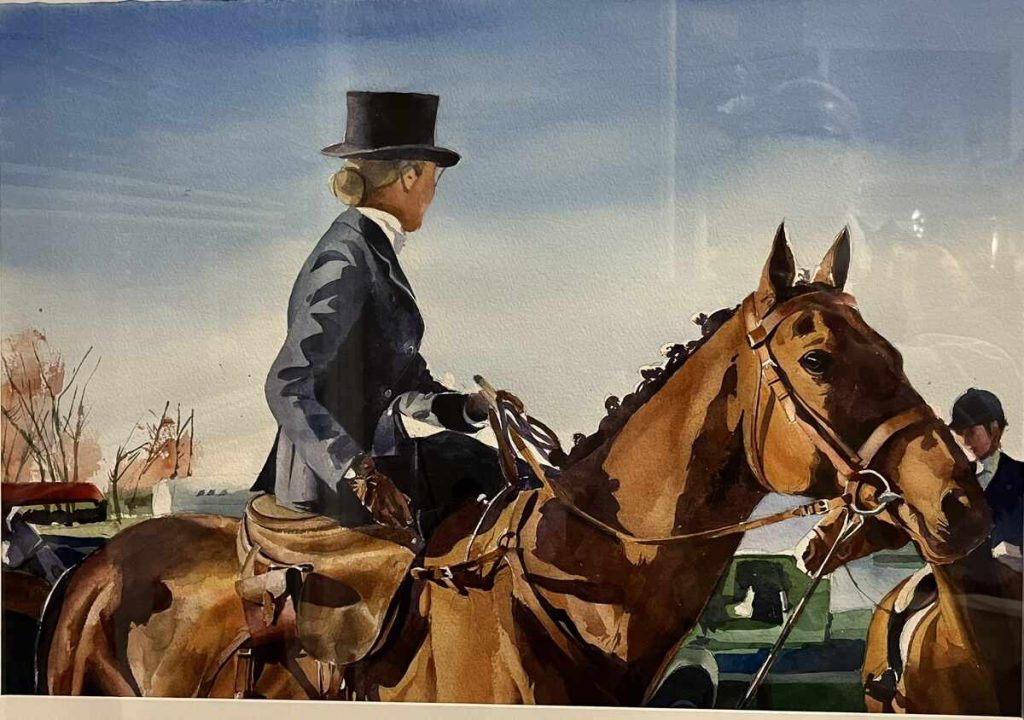 “Following Hounds Sidesaddle” Watercolor by Michael Tang